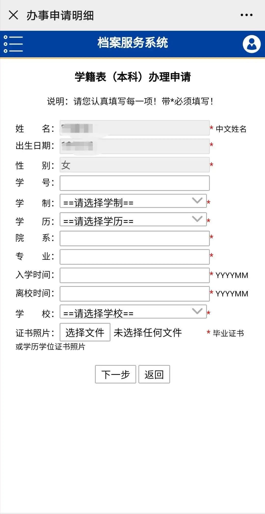 填写办理申请,务必仔细 ↓