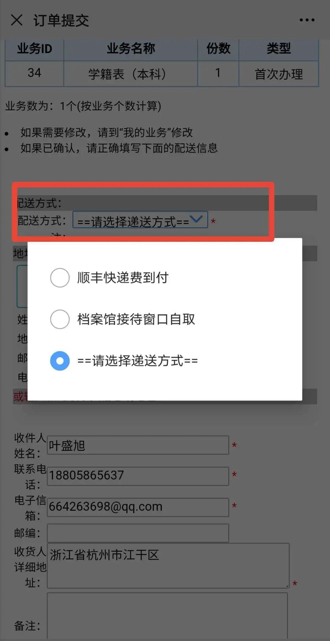 可以选择自取或邮寄 ↓