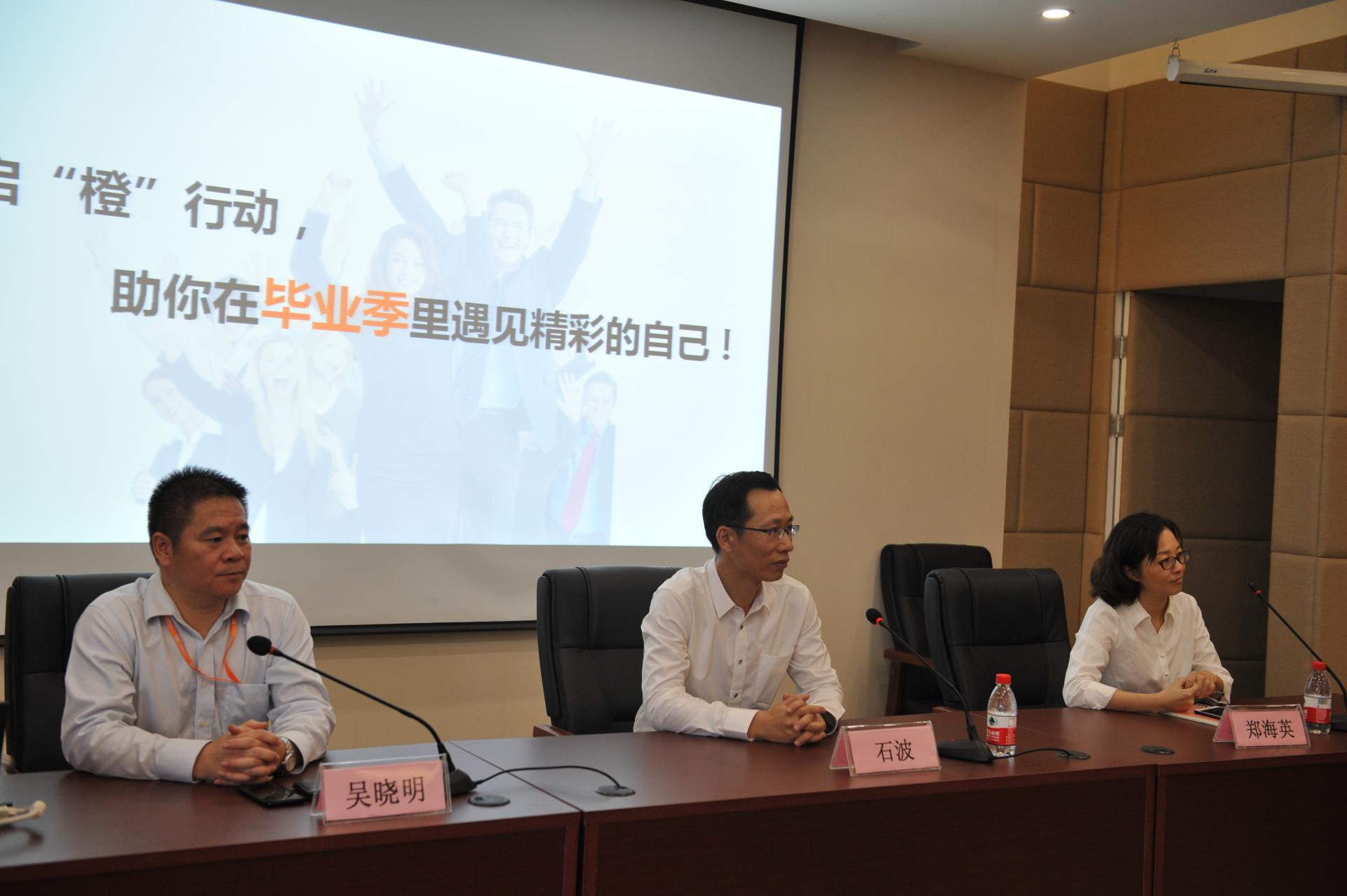 平安银行杭州分行行长石波作了题为《互联网时代银行业转型发展趋势》的报告,向同学们介绍了我国商业银行的发展历程、商业银行的发展规律和趋势、平安银行的基本情况和未来发展方向,并展示了平安银行新网点的全新面貌。人力资源部总经理吴晓明对此次平安银行校园招聘的流程、新员工的培养计划等内容作了详细介绍。随后,石行长一行与同学们进行了问答互动并现场对应聘的同学进行了面试。