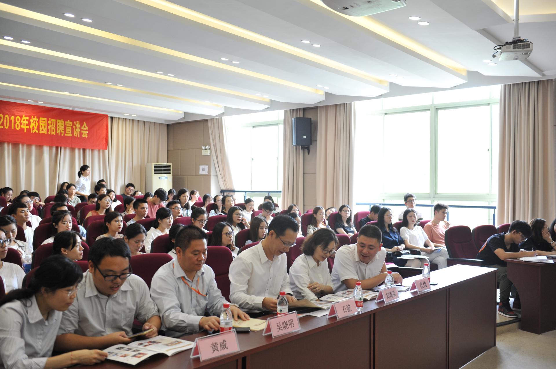 9月26日,平安银行杭州分行2018年校园招聘宣讲会威廉williamhill登录入口站在威廉希尔williamhill官方网站二楼报告厅举行。平安银行杭州分行行长石波、人力资源部总经理吴晓明、零售综合管理部副总郑海英、公司银行部副总经理孔伟、公司网络金融部副总经理黄威、人力资源部副总经理章媛参加此次宣讲会。